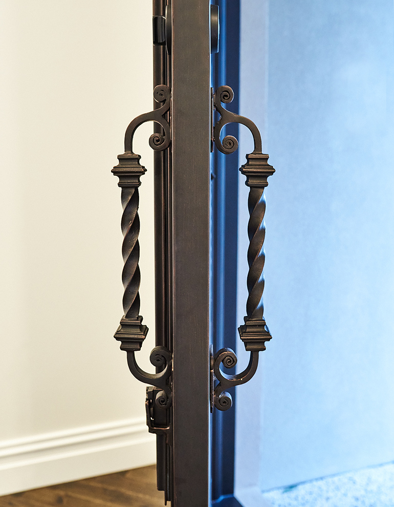 Stylish custom wrought iron internal doors adding sophistication to the aesthetic appeal.