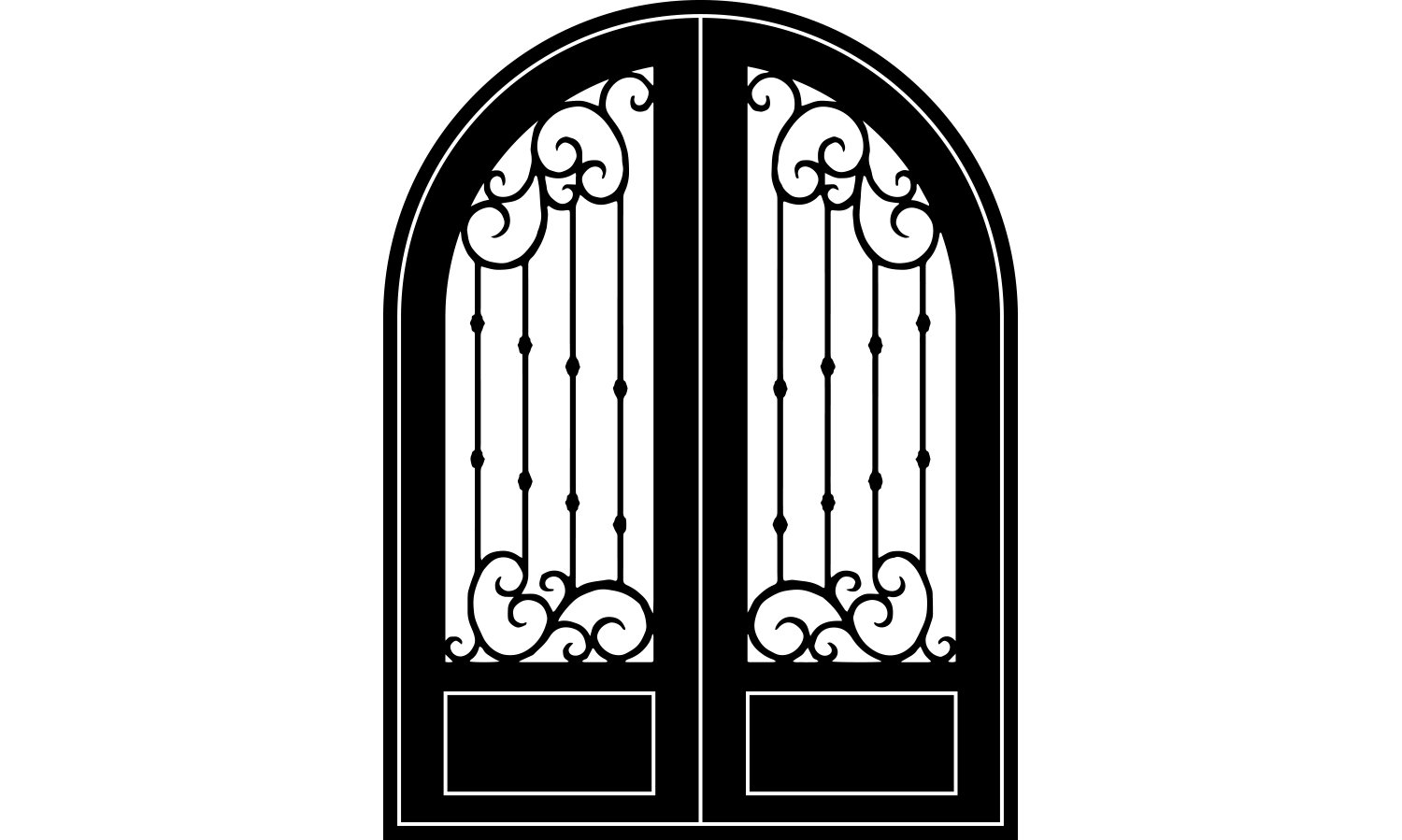 Handcrafted wrought iron entrance doors featuring custom designs and timeless durability.